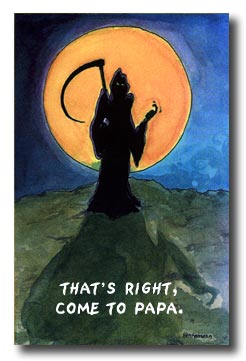 We were standing there next to the sink, with maybe a box of family photographs on the counter. She said You know, you guys (the living) think about me a lot more than I ever think about you. All this stuff (papers, photos) has no importance to the dead. The dead dont care very much about the living. Thats why we never come back to visit you. But youre here right now, arent you? I said. Not really, she said, smiling. You were the worst about squirreling away recipes and hoarding mason jars, I tell her. She laughs. The worst. 12/3/02 An interesting day. First thing in the morning Don, my insurance broker, calls to tell me that since I am outside the Oracle Fire District, nobody will give me homeowners coverage unless I clear all the vegetation from my property, put a metal roof on my house, and pay a hugely inflated premium. Last summers brush fires have spooked them. The protecting hands are shaking me off like an unwanted bugger. Their television jingles run through my mind as I watch their backsides disappear down the road. Whoa, good neighbor! Where you going? Normally such news would have constituted an emergency, but in the current context it seemed like something which could only slightly diminish the good fortune of the heirs to whom I will shortly bequeath my property. "Well Don, I said. I dont see the problem. If your people can offer me an affordable rate Ill buy the insurance, and if they cant, I wont. No hard decisions there. Fire insurance is one of a number of disappearing problems. The need for a low mileage car. The dilemma of whether to go for crowns and implants or a set of hand carved Mexican dentures. Will my retirement stash be enough to provide an income in my golden years? When will I finish my house? How will I get my cholesterol down? Do I know enough? Should I quit drinking? Should Bush invade Iraq? It is almost as though there is a upside to this. Everywhere I look, worries are falling away like autumn leaves. Money problems invert to inheritance issues. The whole logistical snarl of my life boils down to finding homes for four parrots, designating the disposition of my assets, finding time to read the rest of Annie Dillard and walking out onto the ice. The part of me that frets about crisis management has begun to relax. I have an appointment with Dr. Cobb at Catalina Chest at 11:00, to look at my CT film. If he says Im ok Ill be very happy. If he pronounces my death sentence, I will quit both my jobs and take the rest of my life off. Wait a minute. This is not so bad. 12/4/02 Dr. Cobb seems to know all about chests. He put up sheet after sheet of the hundreds of cross sectional salami photos into which I had been sliced by the scanner. Sure enough, there about 1/4 of the way down my right lung was this tiny white speck. Somebody had drawn a circle around it with a sharpie pen. Its very small, he said. It wouldnt show up in an X-ray. Its too small to biopsy. Its probably just a little piece of junk thats been in there for a long time. At this stage, the only way to know if its malignant is to see if it gets any bigger. We scan it again in three months, and as long as theres no change we increase the intervals. And if its malignant? Then well get it out of there, he said. Thanks, Doc, I said. Thats a load off my mind. The happy option. The cat lives. Gore is President. The dream of immortality had already begun to wrap around me as I walked into the parking lot to the gas guzzling Ford pickup that I have got to replace before it drives me to the poorhouse. As I turned onto La Cholla I remembered that my homeowners insurance was due to expire in a week, and that getting the Oracle Fire District enlarged to include my place was going to involve enlisting everybody on Cody Loop to sign the request along with me. If I didnt get a coat of sealer on those banisters this month I might as well set fire to the place myself. Charlie Goffs cows were trashing my yard, and I secretly suspected that Id spend half of my annual vacation up in the catclaw rebuilding a half mile of barbed wire fence. I remembered that I had resolved to quit teaching, no matter how things turned out. I reconsidered it, then reconsidered it again, then decided to decide later. Im weeks behind with my e-mail. I need socks. |