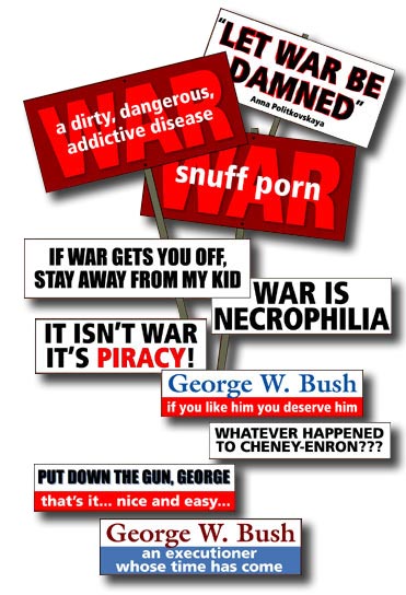 Be assured, however, that I have not been body snatched, nor have many others. I think that beyond our borders most people can still see objectively and will assist us in maintaining perspective. On the bright side, we will be relieved of our customary boredom, as we ride these waves of tumultuous change into possible doom. I'm also more militant than your pastor (and mine), though I suppose we should beware of anger as yet another dangerous symptom of the war mentality from which even peaceful people like ourselves are not immune.